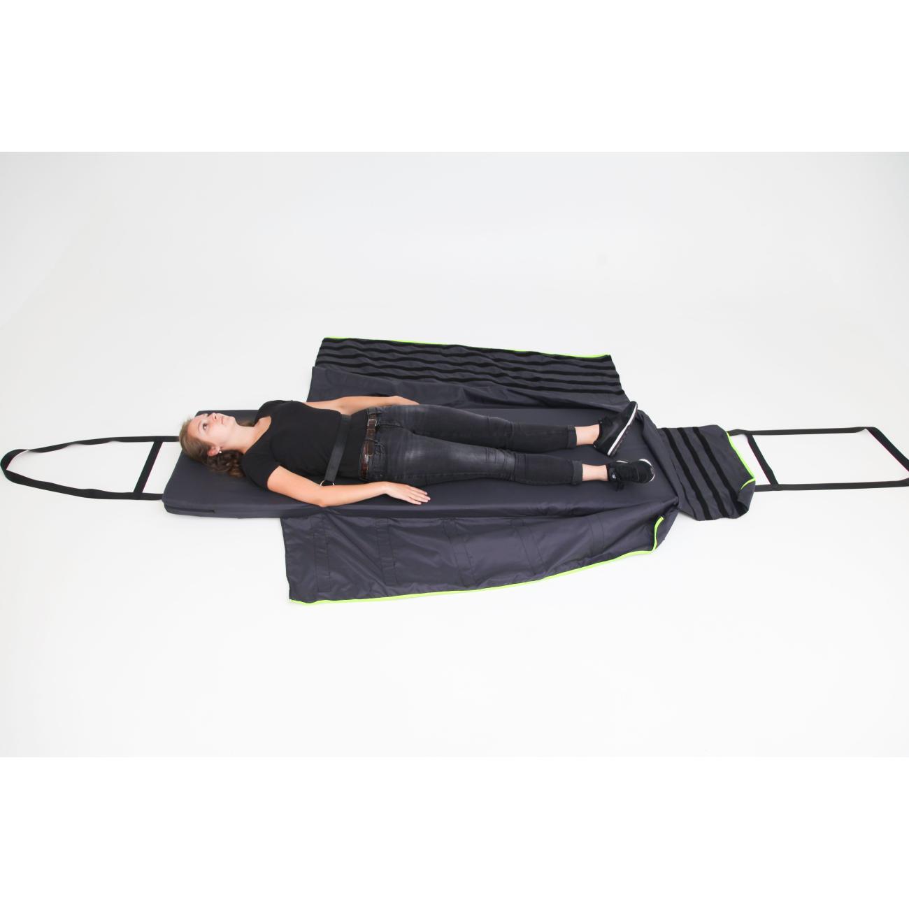 Evacuatiestoel met extra draagbeugels voor bediening door twee personen. Zorgt voor een veilige evacuatie van niet-zelfredzame personen.