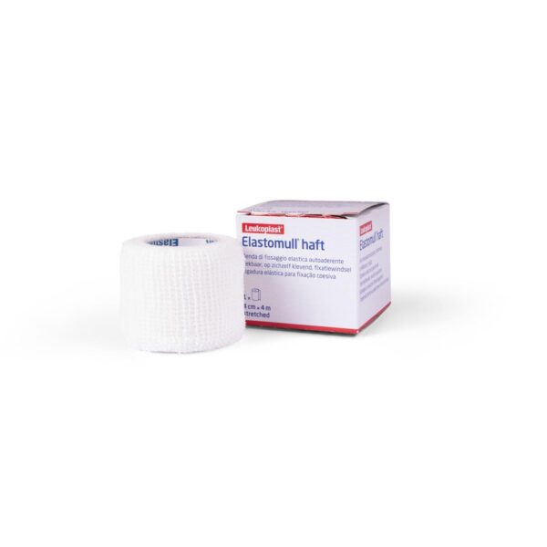 Elastomull haft is een zeer rekbaar en huidvriendelijk wit fixatiewindsel van 40% katoen, 30% viscose en 30% polyamide. Omdat het fixatiewindsel is geïmpregneerd met micro-druppels natuurrubber latex, kleeft het windsel wel op zichzelf, maar niet op de huid of aan het haar. De hechtende eigenschappen worden versterkt door de speciale golvende weefstructuur. Dankzij de speciale weeftechniek en het gebruik van polyamide is Elastomull haft bijzonder rekbaar. Zelfs gecompliceerde verbanden kunnen hierdoor snel en gemakkelijk worden aangelegd. Omdat Elastomull haft op zichzelf kleeft en niet verschuift, kan volstaan worden met een beperkte (1/3) overlap per winding, zonder renversétechnieken, waardoor materiaal en tijd worden bespaard. Ook verbanden op bewegende lichaamsdelen als gewrichten blijven met Elastomull haft goed zitten en kreuken niet. Bovendien treden er bij normaal gebruik, dankzij de elastische eigenschappen, geen veneuze stuwingen op en wordt de bewegingsvrijheid nauwelijks beperkt. Zelfs na langdurig gebruik neemt de elasticiteit niet af. Om veneuze stuwing te voorkomen, wordt Elastomull haft bij voorkeur niet onder spanning aangebracht. Het is daarom makkelijker om Elastomull haft per winding af te rollen, alvorens het verband te fixeren. Dankzij het hoge katoen- en viscosegehalte en de wijdmazigheid van het weefsel, is Elastomull haft zeer zacht, comfortabel en huidvriendelijk. De open weefstructuur zorgt er bovendien voor dat de huid goed kan blijven ademen. Elastomull haft kan in een autoclaaf of met behulp van gas worden gesteriliseerd.
