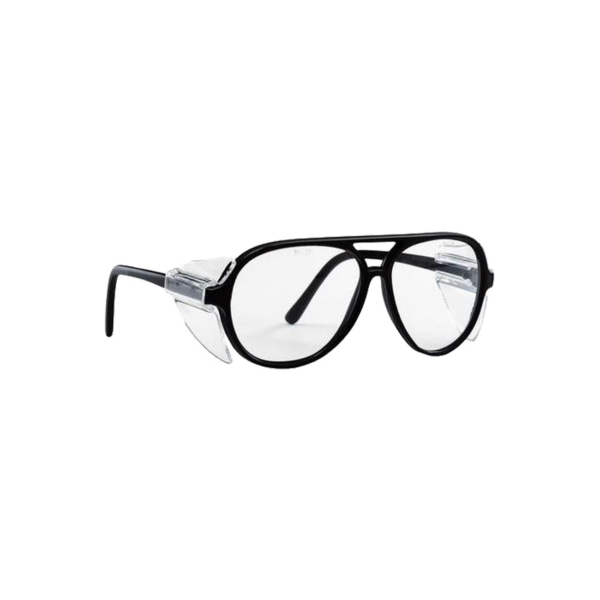 Honeywell Knight T3500 veiligheidsbril zwart nylon montuur met blanke glazen van polycarbonaat.