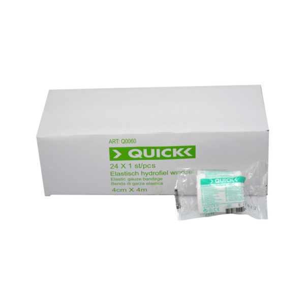 Een Quick elastisch hydrofiel zwachtel kun je bij alle verwondingen gebruiken. Dit is naast hydrofiel ook elastisch en blijft daardoor beter zitten.