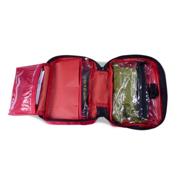 EHBO kit met professionele hulpmiddelen om bloedingen snel en effectief te stoppen.