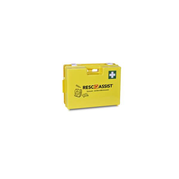 Deze Resc-Q-Assist verbandtrommel School bevat een DIN-vulling en is speciaal door ons ontwikkeld, zodat deze geschikt is voor gebruik op een lagere school of het voortgezet onderwijs.